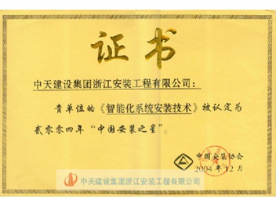 • “智能化系統安裝技術”榮獲2004年度“中國安裝之星”