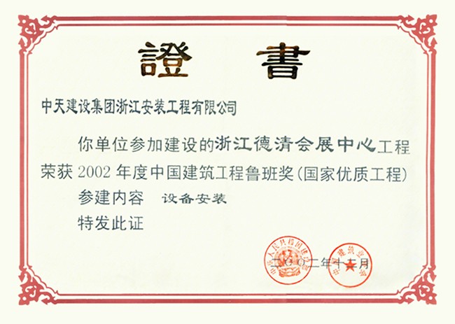 • 浙江省德清會展中心 2002年度中國建設工程魯班獎