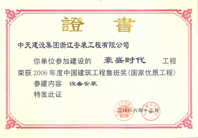 • 西安豪盛時代工程 2006年度中國建設工程魯班獎