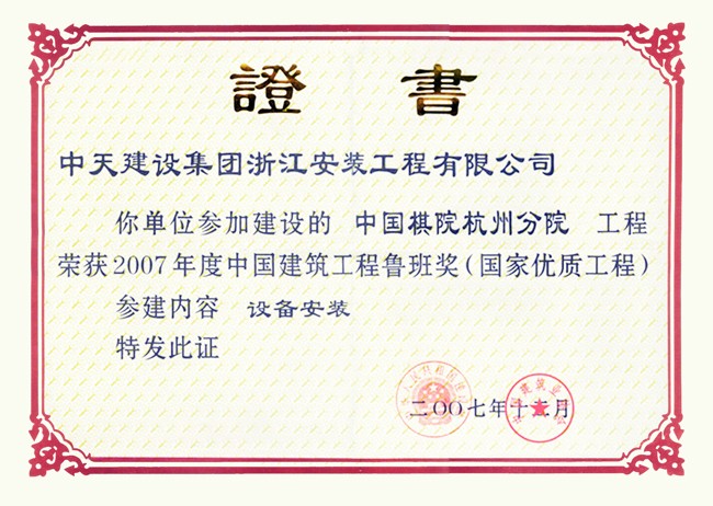 • 中國棋院杭州分院 2007年度中國建設工程魯班獎