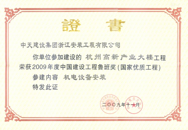• 杭州高新產業大樓 2009年度中國建設工程魯班獎