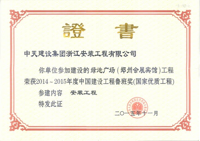 • 綠地廣場(鄭州會展賓館) 2014-2015年度中國建設工程魯班獎