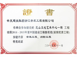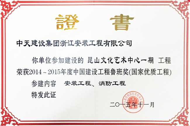 • 昆山文化藝術中心-2013~2014年度中國安裝工程優質獎(中國安裝之星)
