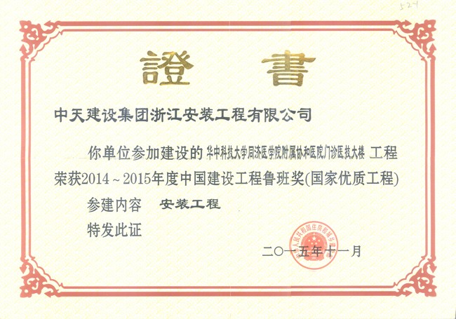 • 武漢同濟醫學院附屬協和醫院醫技大樓 2014-2015年度中國建設工程魯班獎