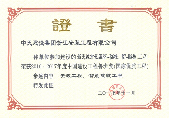 • 中天集團工程質量獎