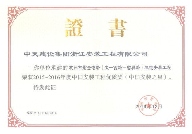 • 中國安裝工程優質獎項目12-杭州紫金港路項目