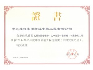 • 杭州地鐵1號線綜合監控系統集成工程-2013~2014年度中國安裝工程優質獎(中國安裝之星)